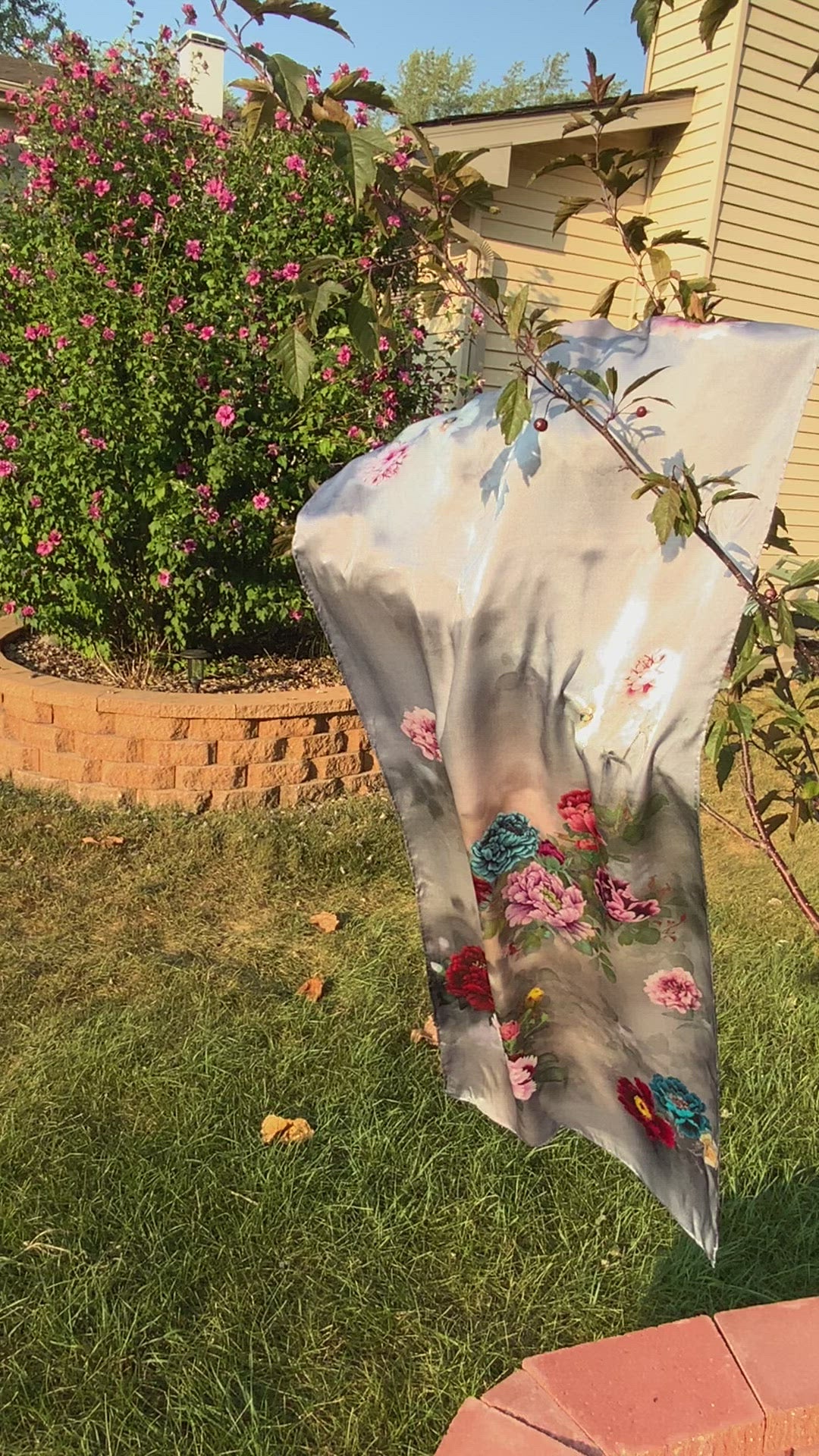 Our Crimson Silk Scarf reveal, this scarf looks out of this world in person, the striking reds and blues look absolutely stunning.Our scarves are made wit high quality silk. This scarf is 100% pure silk, that derives from Mulberry Trees. Our silk scarf is versatile, which makes it perfect for all occasions. We have carefully developed and refined our silk with highest quality standards and maintaining the beauty of silk. Silk is a sensuous soft luxury fabric that is versatile and durable, it is made from a natural protein fiber which makes it inherently strong and possesses some of the most coveted traits of fabrics, silk contains natural cellular albumen which helps speed up metabolism of skin cells - thus helping to reduce signs of aging. The beauty in silk is that it brings out your feminine traits but also empowers you with it's striking appearance.