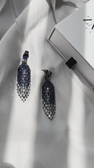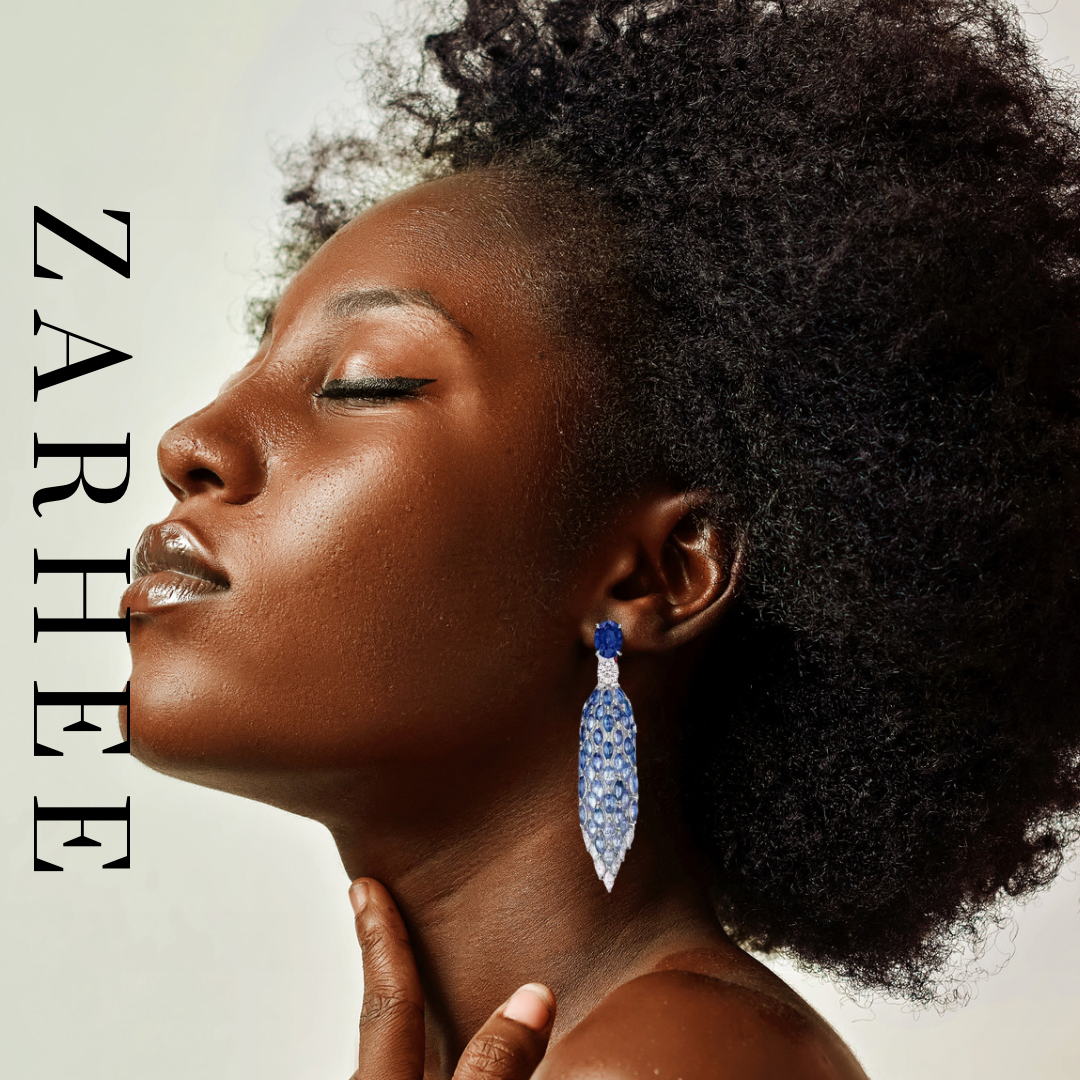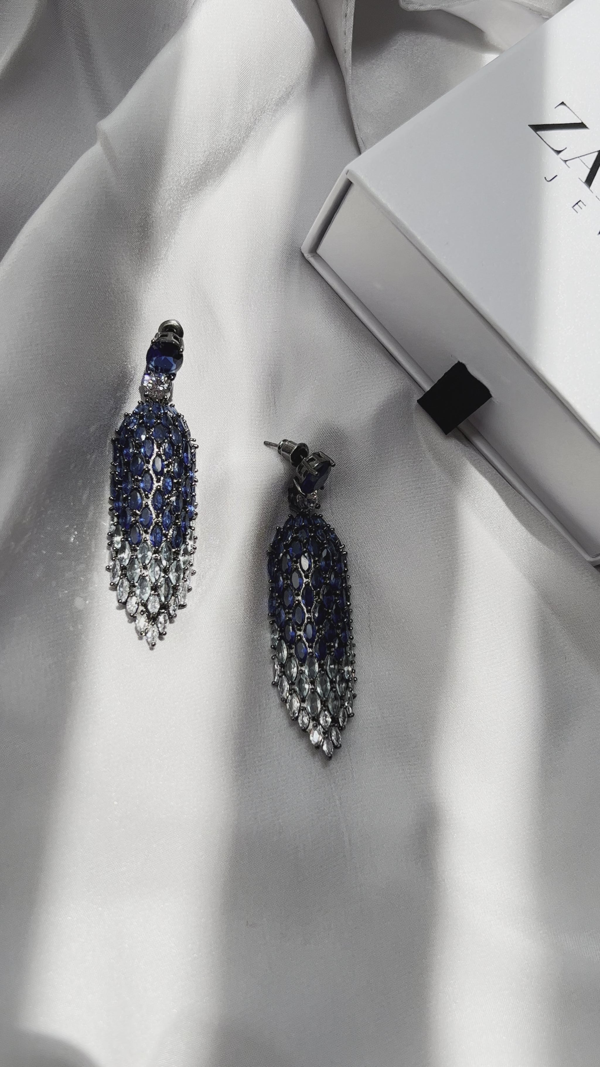 Sapphire blue, a stunning piece carefully crafted with detail. Each stone is handpicked and assembled with perfection. A statement piece but also subtle with its soft pinkish hues. Perfect for day or a nighttime event.