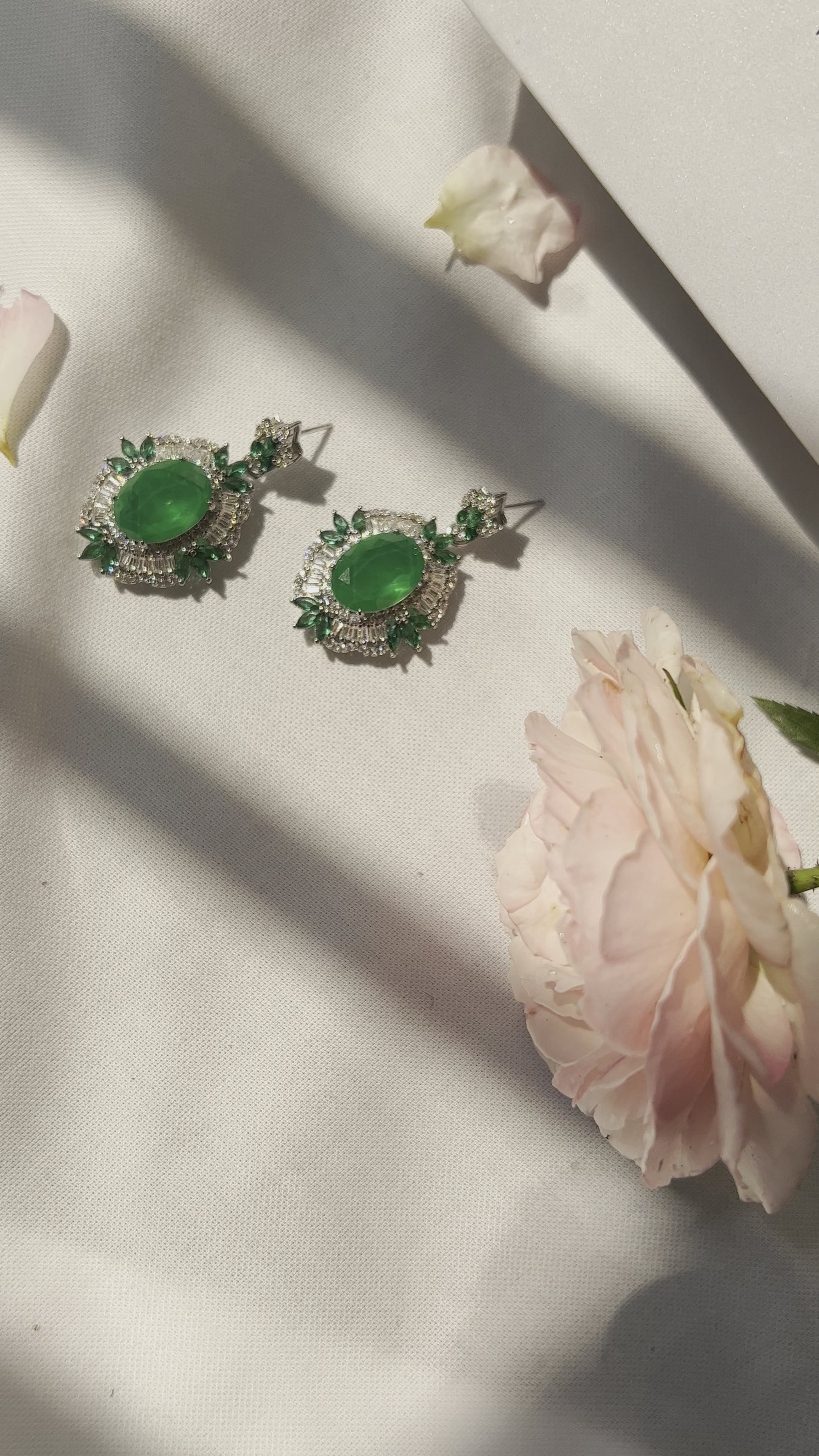 A beautiful and elegant emerald green stone surrounded by white cubic zircon to bring softness to the intricate design. Each piece is engraved beautifully. A perfect statement piece to add to your jewelry collection. it also fits as a great gift. Who doesn’t love a emerald green earring?