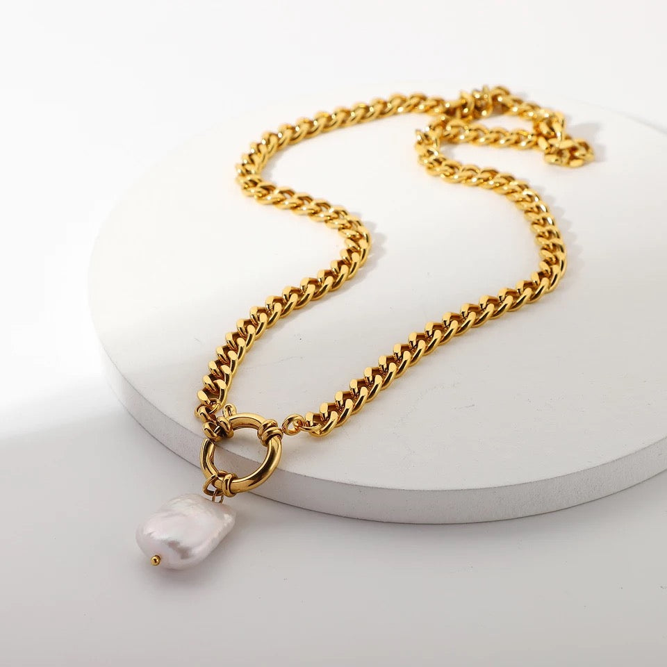 A beautiful designed Cuban Chain with Freshwater Pearl. 18k gold plated | Waterproof | Hypoallergenic.