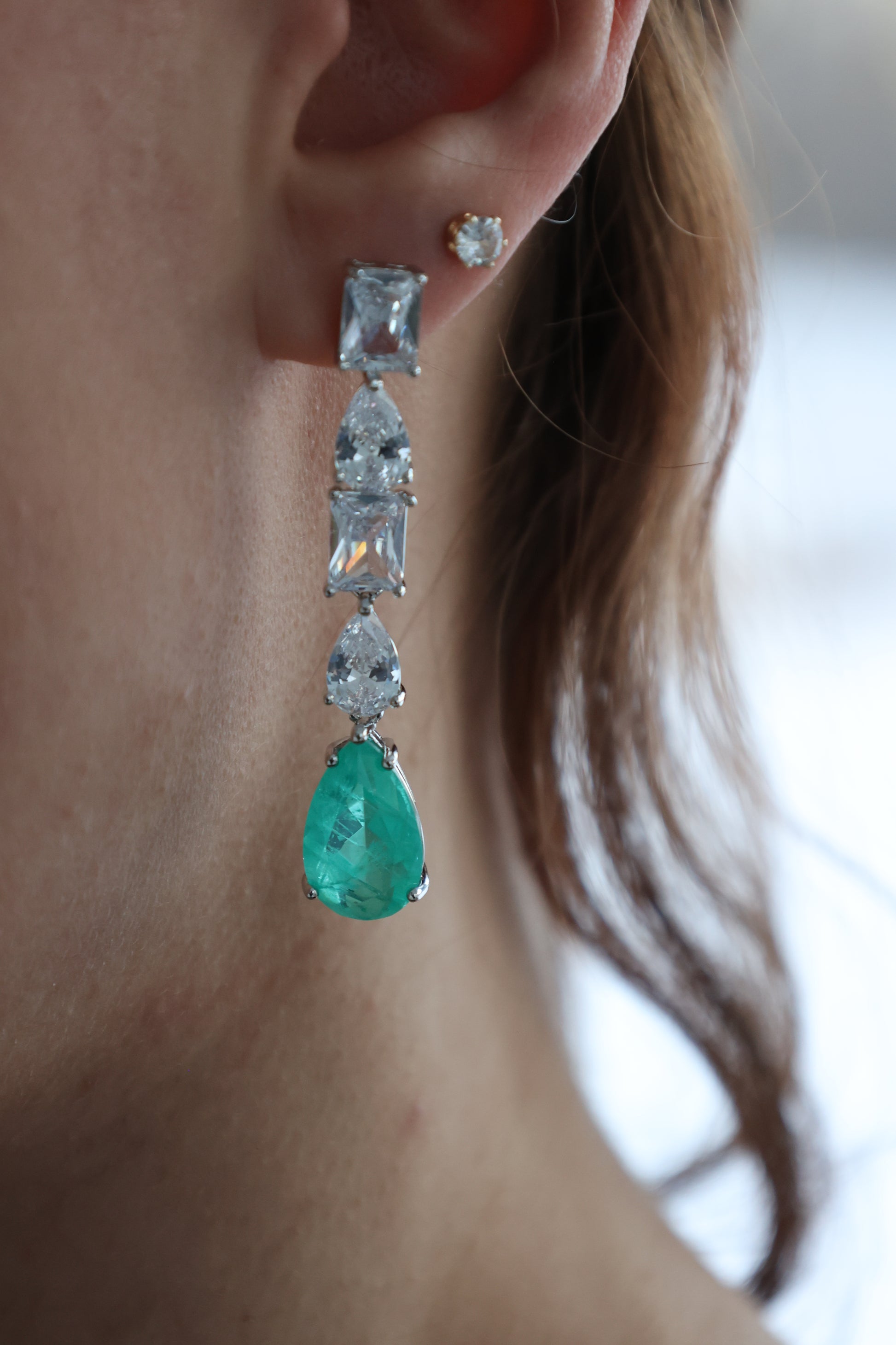 Feminine and delicate, the design of this beautiful tourmaline earrings offers a refined sense of luxury, resembling sophistication. This eye-catching tourmaline stone linear shaped earrings is a show stopper.