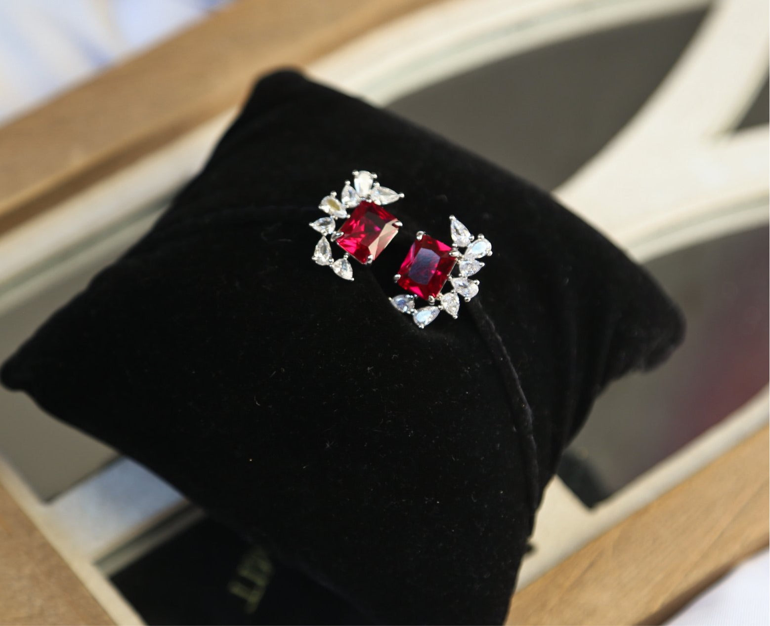 A beautiful red stone with cubic zirconia stones, perfect for all occasions for it's versatile look and size. Product: