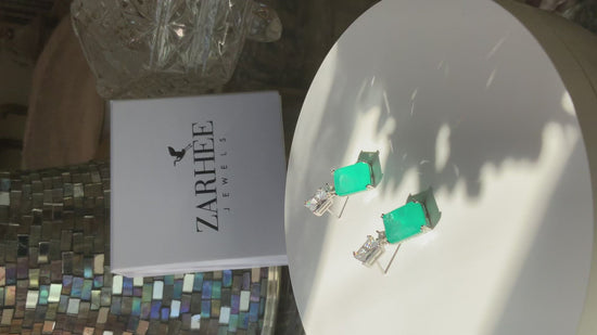 To celebrate the beauty of ocean, we present to you our new Aqua Blue Tourmaline earring. These Zarhee Aqua Blue Tourmaline earrings are breathtaking, a perfect size with a striking color that catches the eye. It is a perfect statement piece to add to your collection. Each stone has its own variance, which makes it unique and a jewelry piece that will turn eyes. Its a color that shines in the bright. It can be worn on any occasion which makes it a perfect versatile piece.